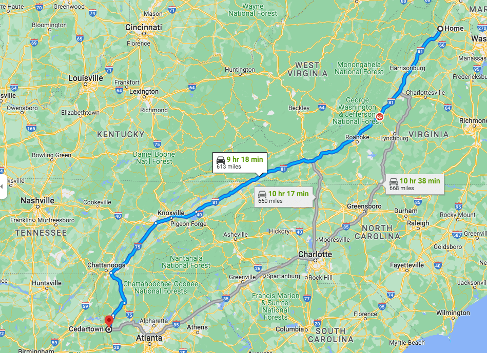 We’re off again…this time is to Cedartown, Georgia for a family wedding.