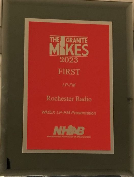 Wednesday night, October 4, 2023, the WMEX Good Guys took to the stage in Concord, to accept the New Hampshire Association of Broadcasters award for “Best LPFM Radio Station in the Granite State for 2023.”